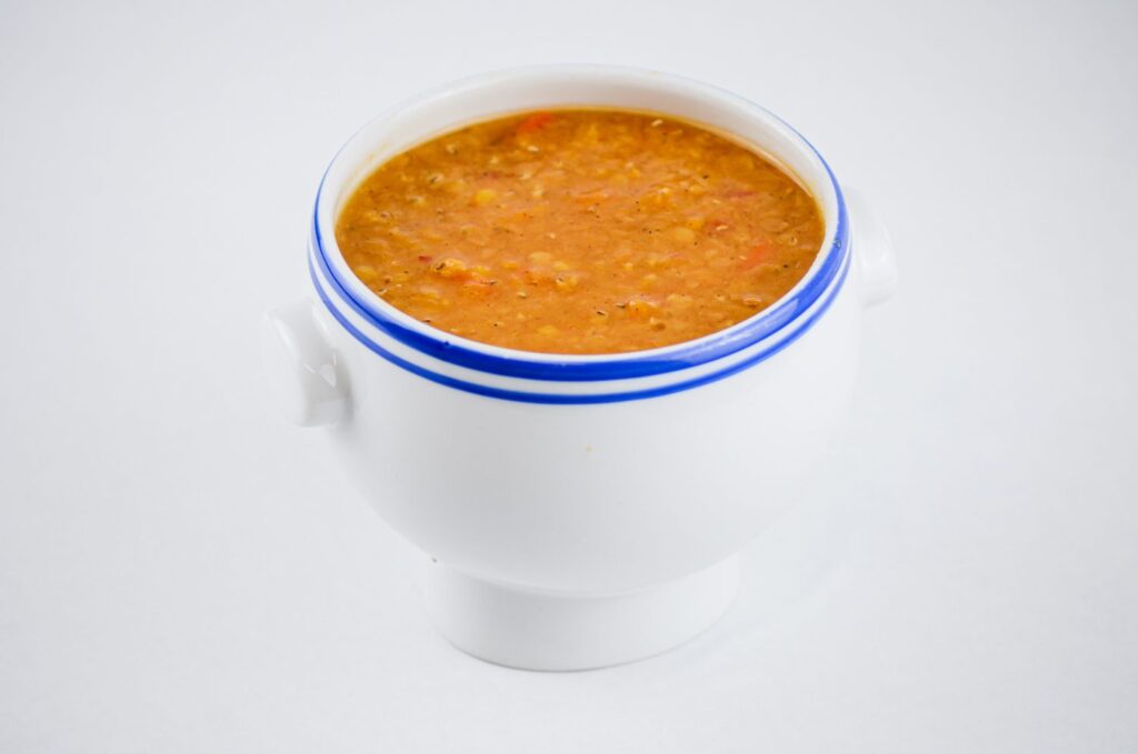 Sambar Linsensuppe (Vegan) CHF 10.90 (250ml) CHF 12.90 (450ml) CHF 16.90 (650ml) Linsen, Tomaten, Karotten, Zucchetti, Kreuzkümmel, Zwiebeln, Senfsamen, Curryblätter, Chili, Tamarindenpaste, Salz. Nährwerte pro 100g: Energie 102kcal/431kJ, Fett 1g (davon gesättigte Fettsäuren 0.1g), Kohlenhydrate 13.6g (davon Zucker 2g), Eiweiss 7g, Salz 0.12.*